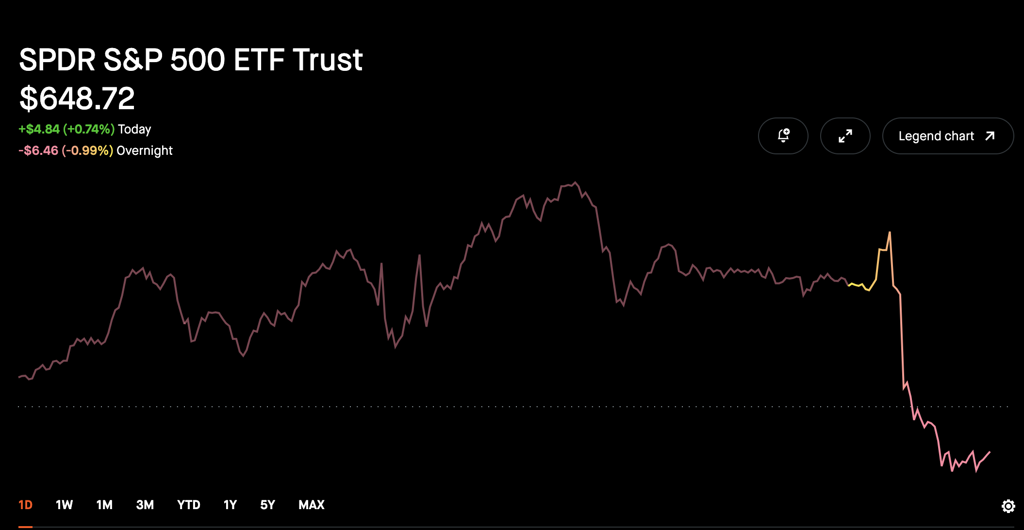 I considered buying a put today after I exited my call contract, the reason being that as I mentioned, I knew it was a fake-out. Given that I've never entered a put contract, I am mentally prepared to lose money on my first put, I'm not saying that it will be the case, but I am prepared for the worst as it will be something new for me. But, I didn't open a contract, I really wanted to wait for Trump's address to the Nation.