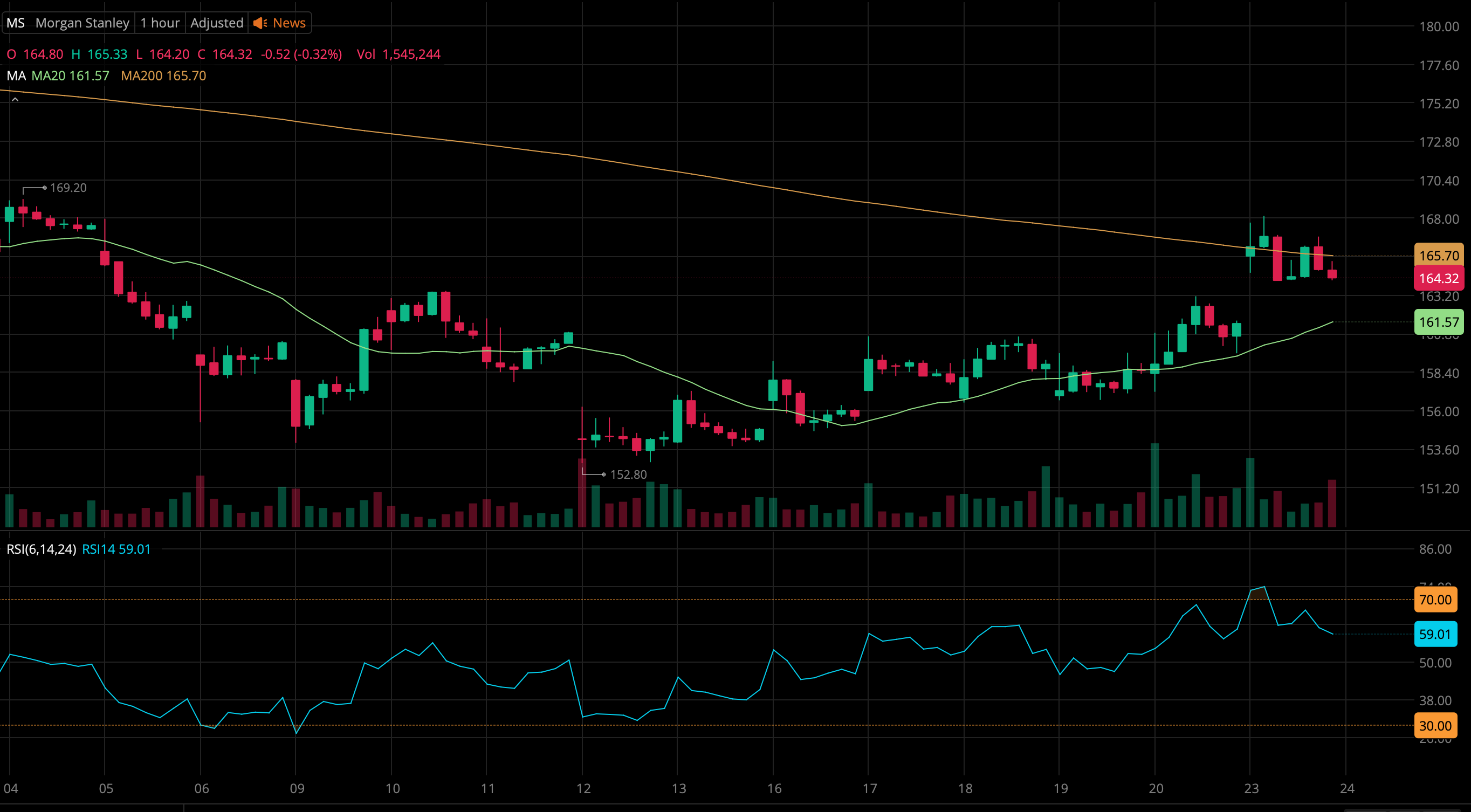 MS didn't necessarily close above the 200MA, but it is kissing it. I do believe in the next days it will stay above the 200MA.
