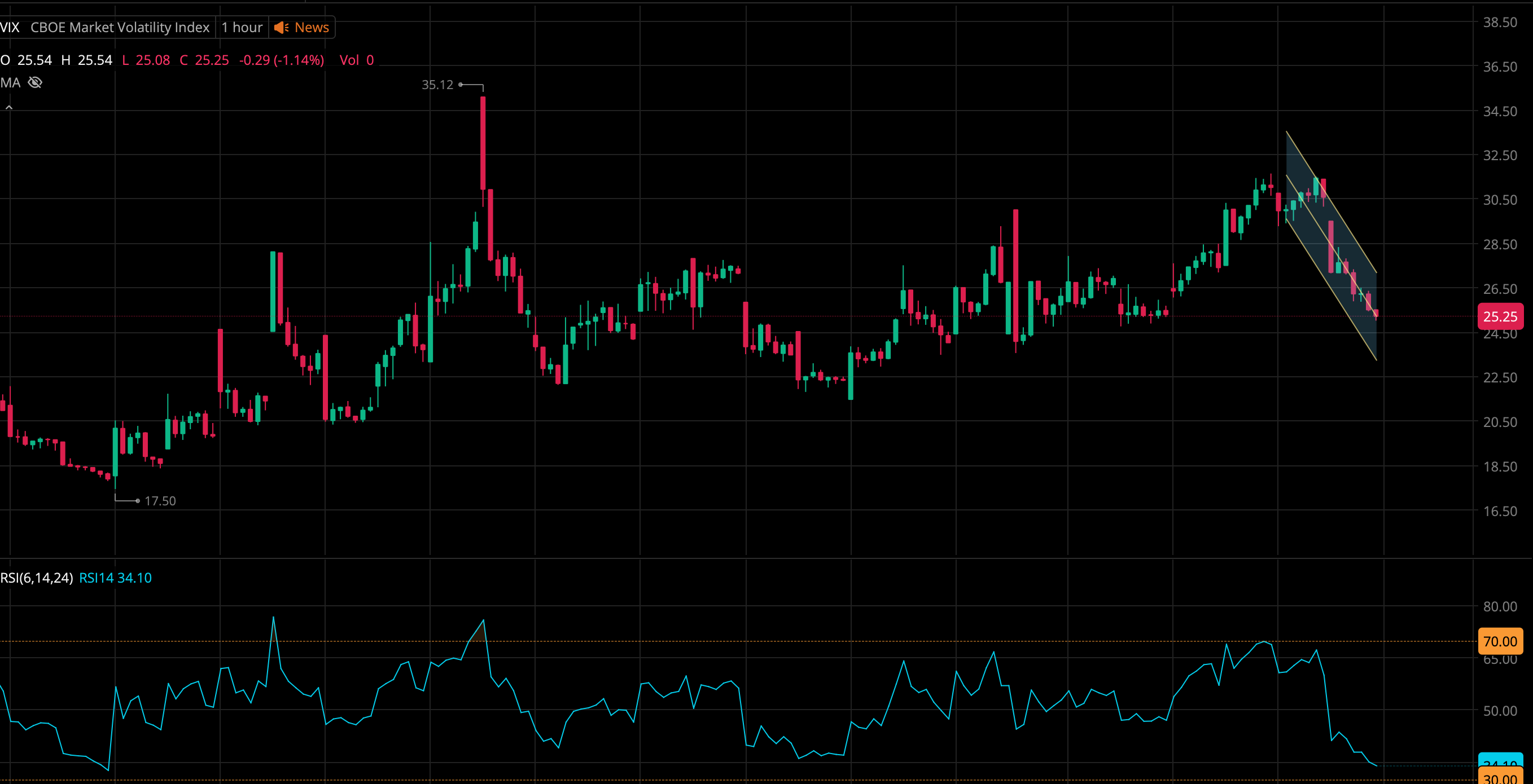 Lastly, the VIX had a decline today, this overall improved the sentiment across the entire market, below is a chart for VIX and highlighted the downtrend observed today.